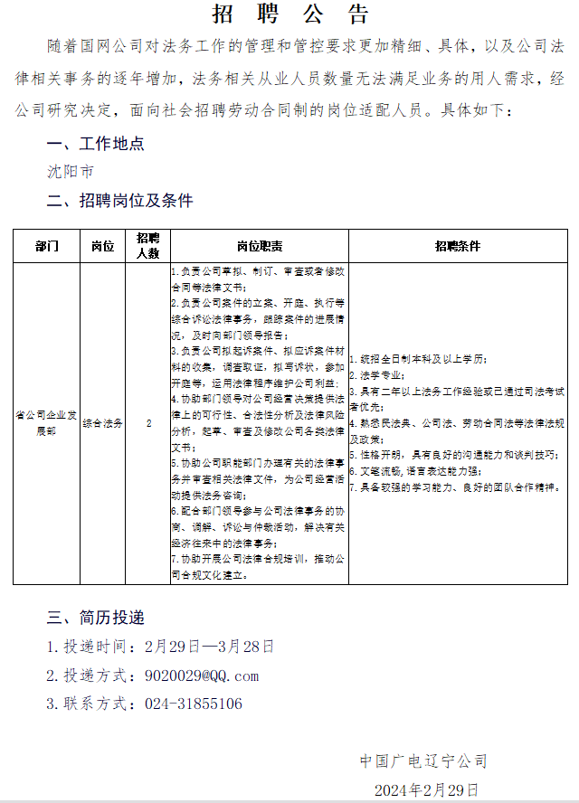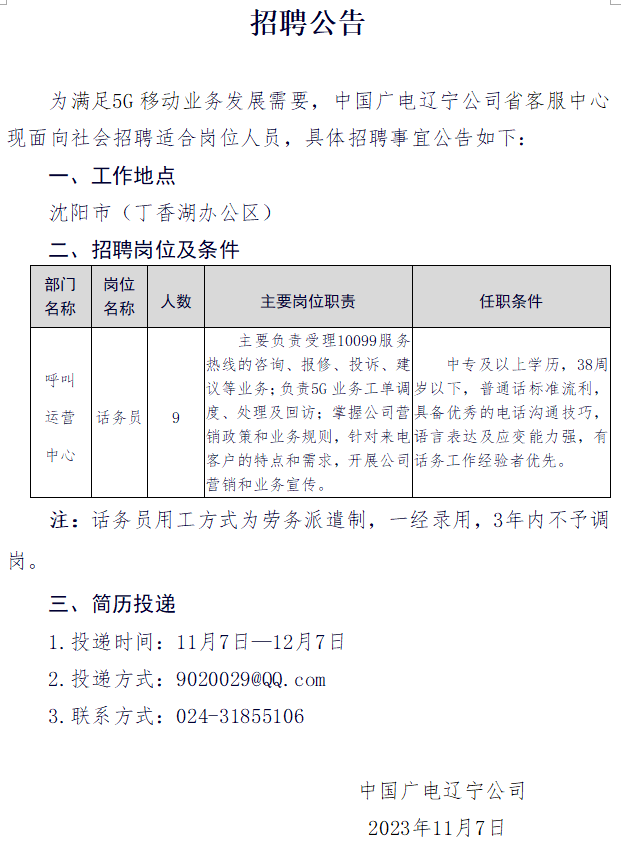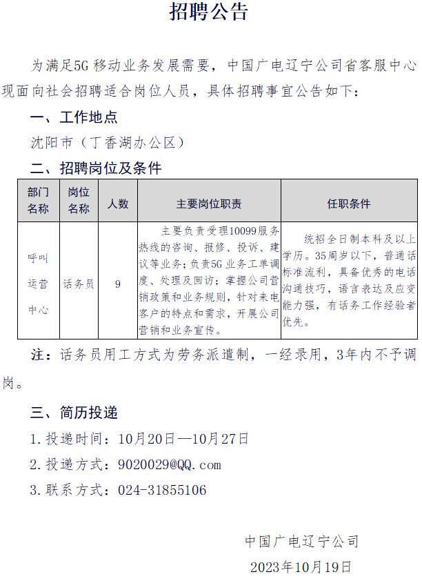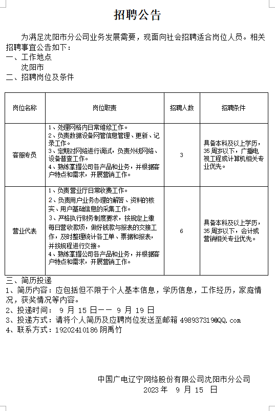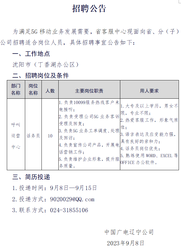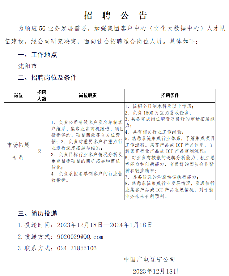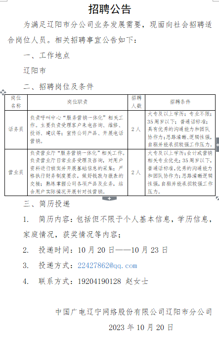中國(guó)廣電遼寧公司遼陽(yáng)市分公司對(duì)外招聘