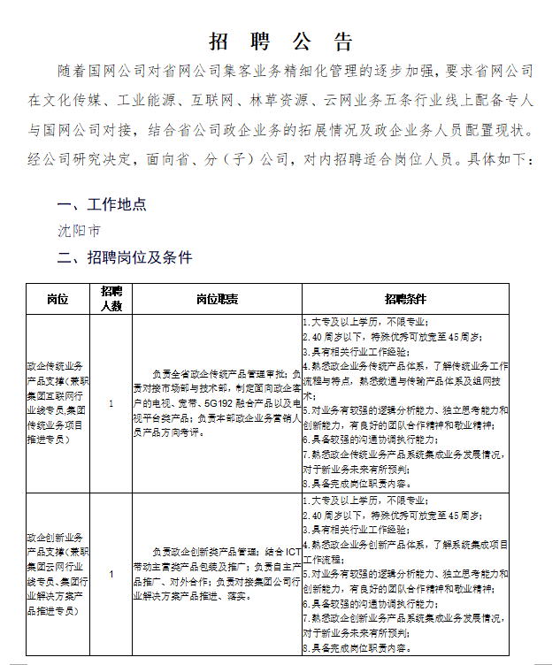 省公司集團(tuán)客戶中心招聘公告